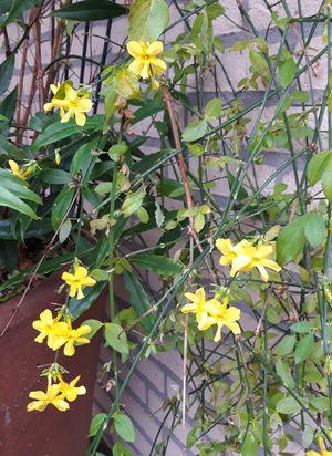 Nu we de eerste nachtvorst gehad hebben, is de meeste kleur wel uit de tuin verdwenen. Wat aan kleur overblijft komt voornamelijk van blad houdende heesters en is dus hoofdzakelijk ‘groen’. Afwijkende kleuren zijn in dit jaargetijde afkomstig van de takken van kornoeljes, geel tot vuurrood, of van vroege winterbloeiers als winterjasmijn (foto), Viburnum bodnantense ‘Dawn’, of, en het zit al opgesloten in de naam, Prunus subhirtella ‘Autumnalis’. Deze laatste kan zowel als struik als boom worden geplant. Ook Camellia kent een variant die vanaf nu bloeit namelijk ‘sasanqua’; deze vroegbloeier houdt wel van een zonnige en beschutte standplaats.