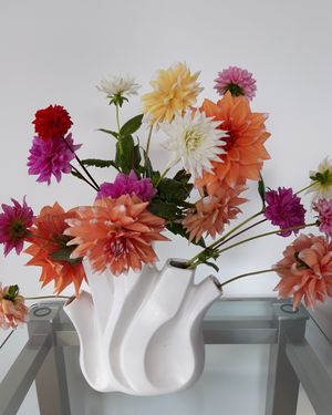 Het zachte weer van de laatste weken heeft ervoor gezorgd dat een aantal planten nog steeds bloemen produceert. Onder hen de Dahlia, die ik laatst de ‘ster van het najaar’ hoorde noemen. Inderdaad lijkt de Dahlia met z’n veelheid aan kleuren en vormen, bloeiend tot de eerste vorst, weer aan populariteit te winnen. Ook als snijbloem doet hij het lang goed getuige het recente boeket op bijgaande foto.